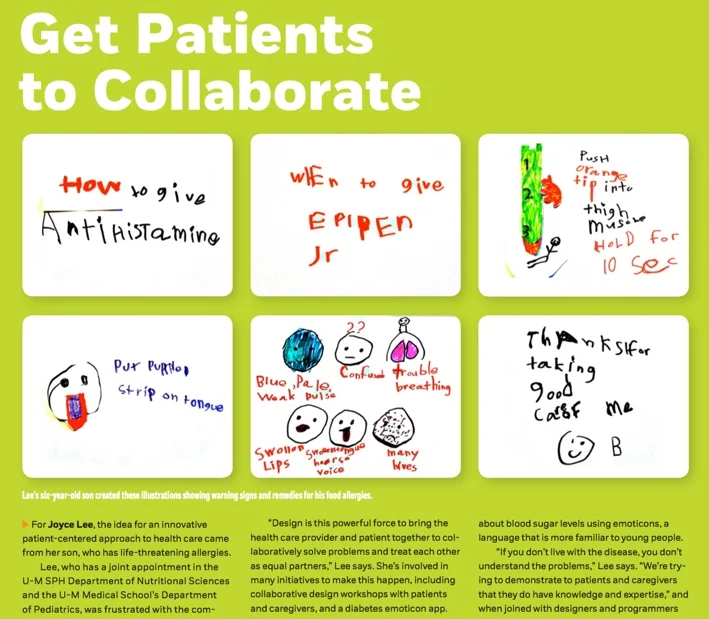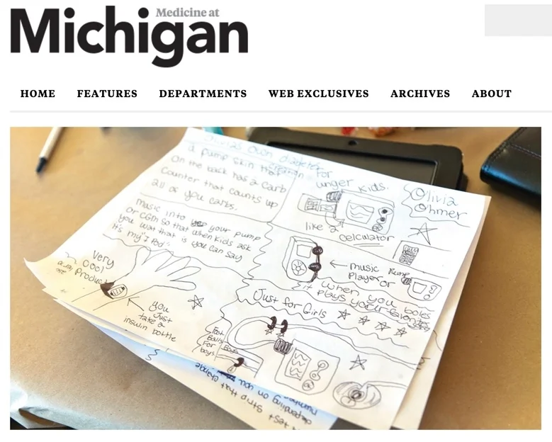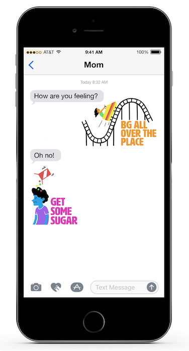 The idea for the Diabetemoji sticker pack came from a participatory design workshop sponsored by HealthDesignBy.Us. Patient experts with type 1 diabetes and their caregivers worked with a multidisciplinary team of University of Michigan students, faculty, and staff, and outside community partners to work through the design thinking process (empathy, defining the problem, ideating solutions, paper prototyping, and iterative testing). Patients and caregivers were active participants